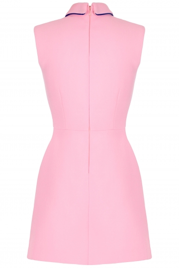 Sleeveless mini-dress by Korsun cut from double wool crepe. The top front part of the dress is covered with multi-coloured stitch embroidery. Zip fastening at the back of the dress. There is also contrast colour detailing around the bottom edge of the collar.