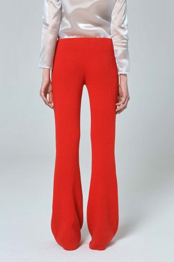 Choose hit product from our new collection - these bright knitted trousers would make a glamorous step for day-to-night styling. Expertly crafted with a soft cashmere for an ultra-cosy fit and finished with ribbed trims, our trendy knitted trousers are cut wide through the leg and finished with tie-belt to the front. They would partner well with our bestsellers - mélange sweatshirts or with bright red jacket.