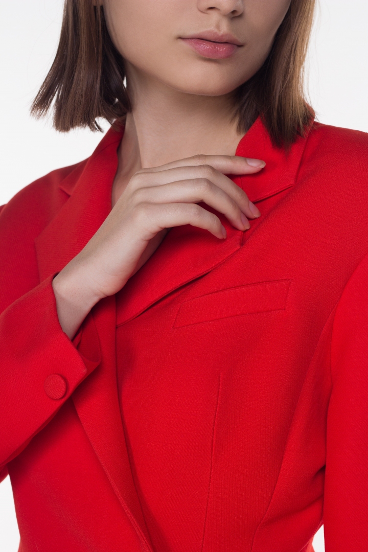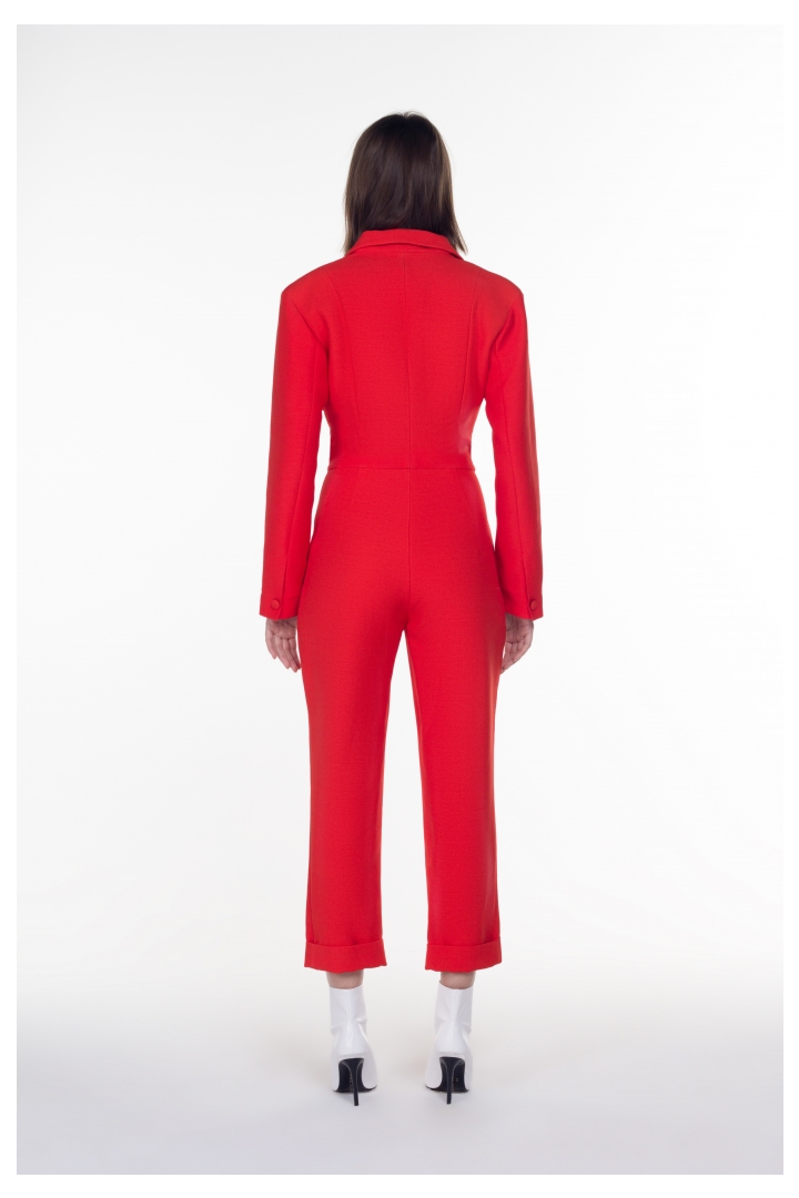 Bright red jumpsuit made of natural wool with an exclusive design will be a wonderful basis for a stylish look. Due to the luxurious composition of the fabric, the model does not lose shape and is comfortable to wear at cold temperatures. The juicy red color of the jumpsuit will emphasize the passion, courage and love of freedom of its owner. In addition, red attracts the eyes and in this look a woman will always be in the center of attention.