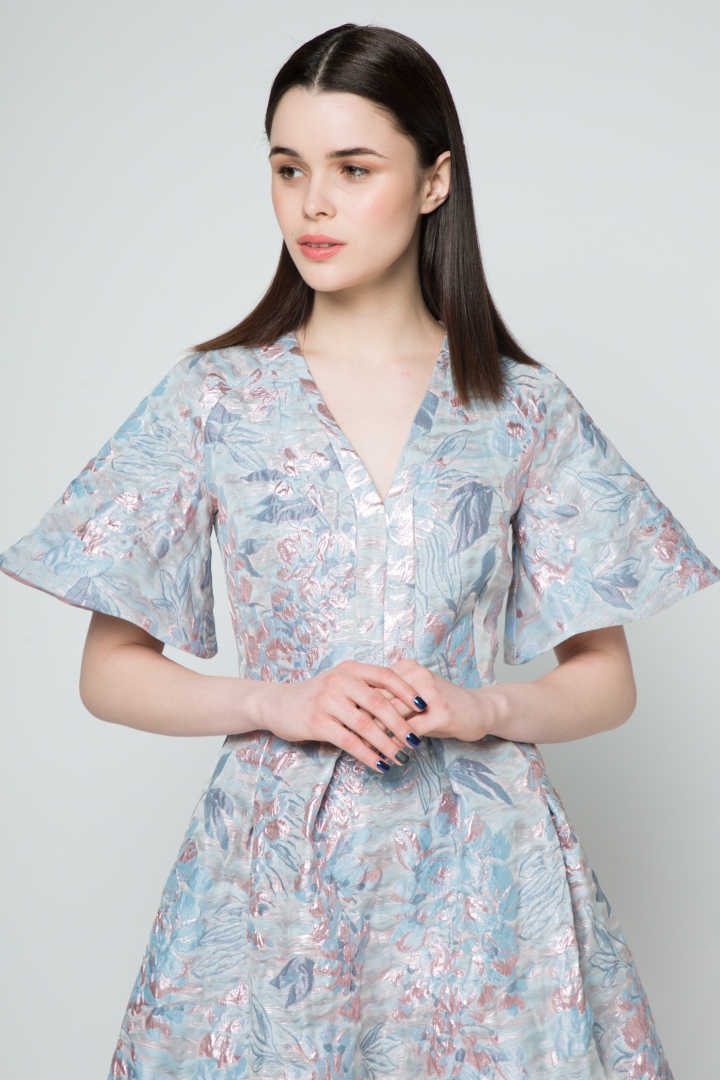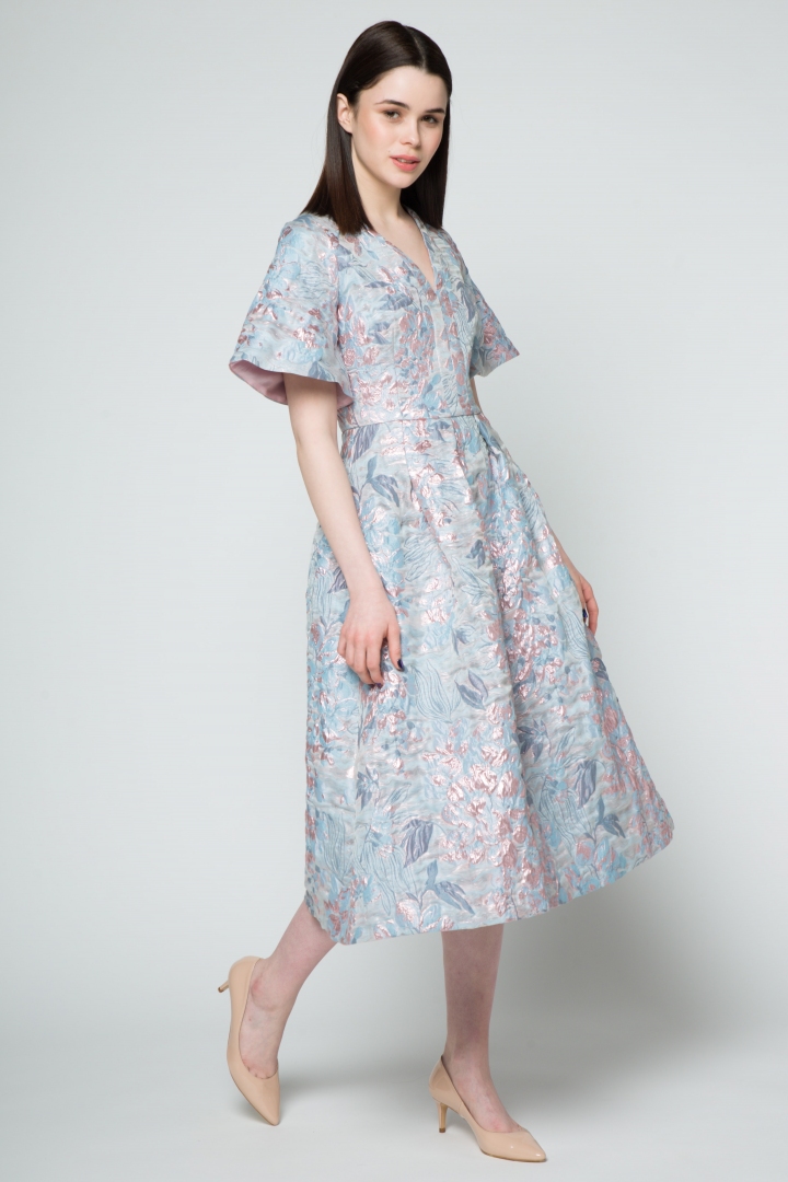 Although the fashion catwalk contends with a plethora of novelties, the jacquard dress certainly deserves special attention. The relief floral pattern gives refinement and nobleness to the piece. The inherent French lustre of the dress leaves an unforgettable impression. Jacquard retains its shape all day long and easy to clean. Thanks to the luxury silk lining, a feeling of absolute comfort is guaranteed.