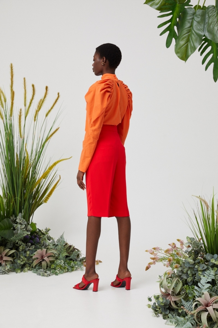 Juicy coloured shorts wit high-waist underline the structure of your figure. The bright colour and ideal length o the item will add to the look sophistication. You can combine this item with any thing, rom blouse to jumpers, which makes them unique.