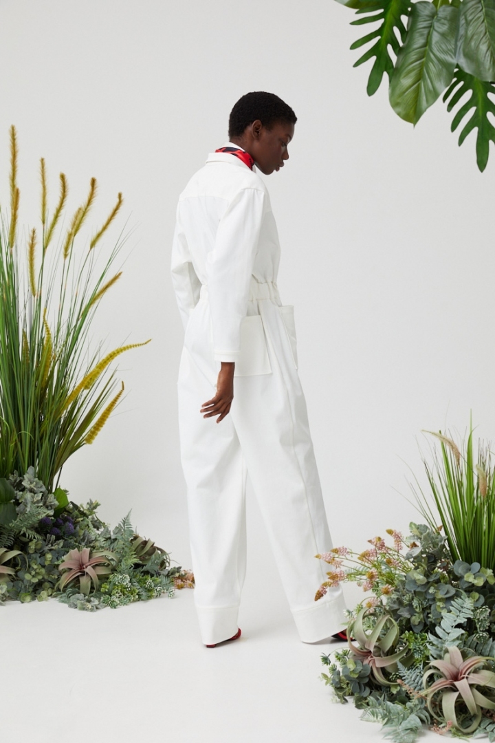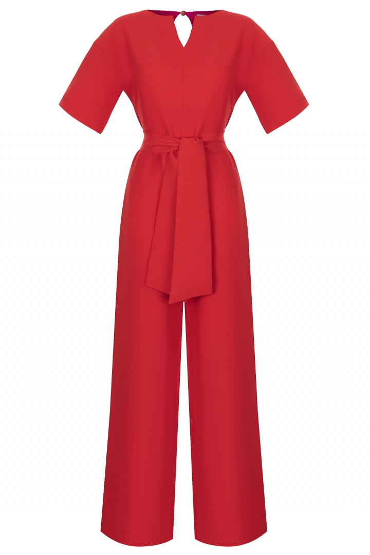 The white jumpsuit with blue, finishing stitching will become an excellent basis for a stylish look. Free model, fresh colour and Italian style will tell you about impeccable taste and bright individuality of the owner.