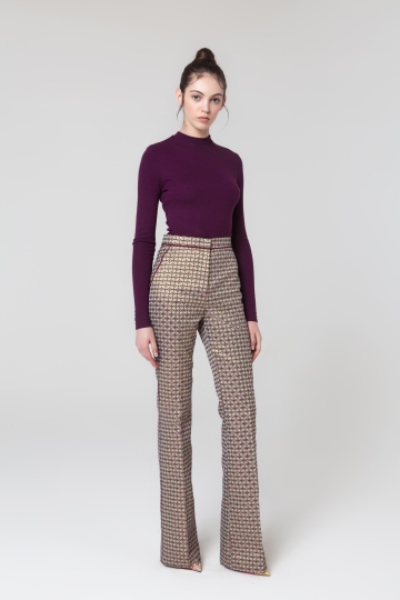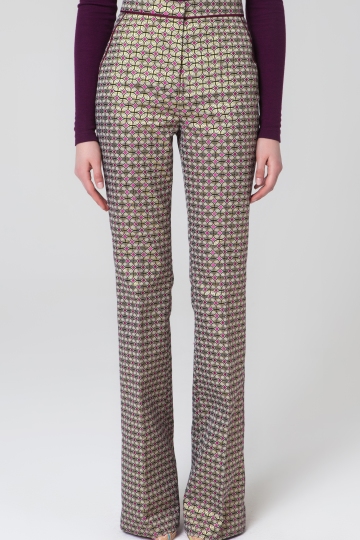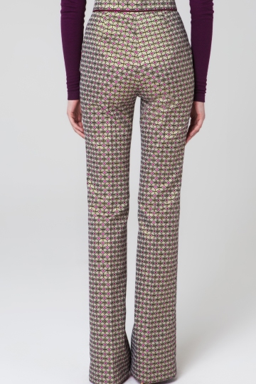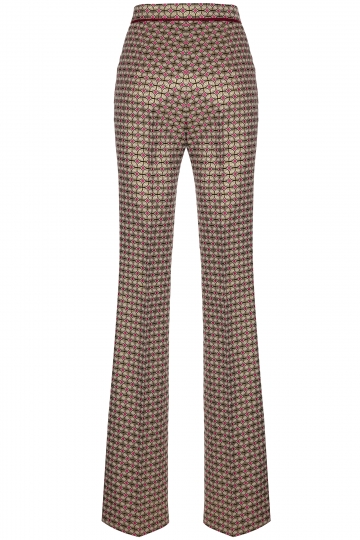 These jacquard pants are cut with a flare silhouette for a leg-lengthening effect. It's crafted from a geometric-print fabric with a high waist. Wear yours with a slim jersey jumper and heels.