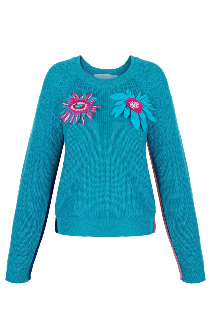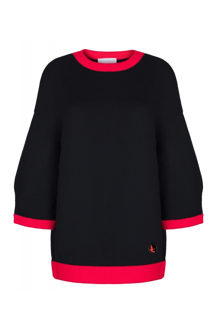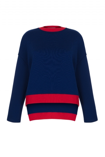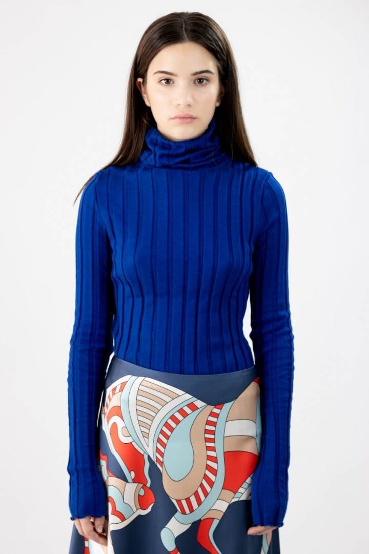 The white, knitted, smooth feeling on the skin pullover - is the hit of the season Spring-Summer 2021. Thin knitted contracting lines and cuffs and current style - is the pledge of a stylish look, as for the softness and the freedom of the item will present feelings of comfort. You can match this model with a skirt and with trousers. Brand KORSUN recommends to wear pullover with the skirt, with large folds, that is in the same set.