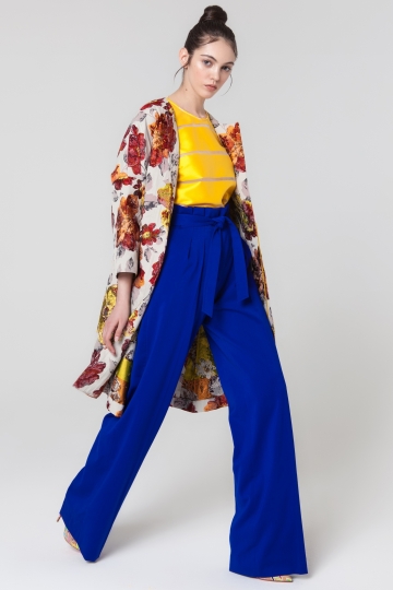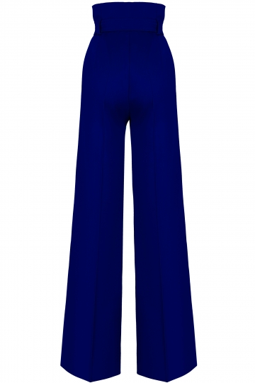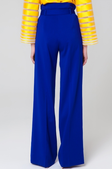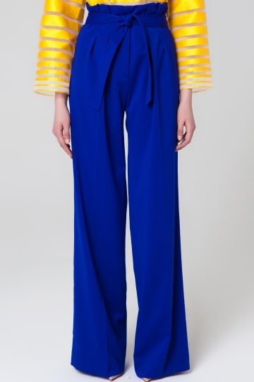 These pants are made from a smooth wool fabric. Designed to sit at the narrowest part of your waist accented by the fabric belt detailing. This pair has figure-flattering soft pleats which emphasize the wide-leg silhouette. Best paired with a bright top.