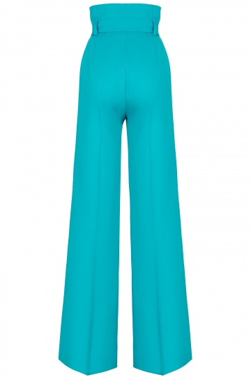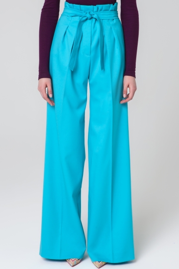 These pants are made from a smooth wool fabric. Designed to sit at the narrowest part of your waist accented by the fabric belt detailing. This pair has figure-flattering soft pleats which emphasize the wide-leg silhouette. Best paired with a bright top.