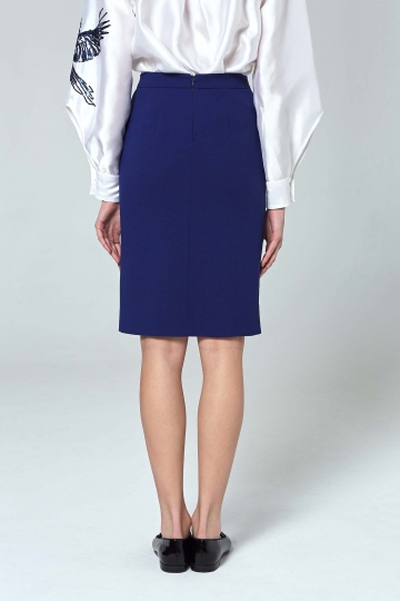 Blue-Embroidered Skirt With Front Zippers
