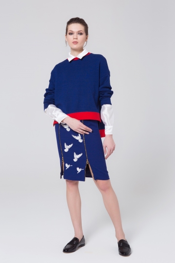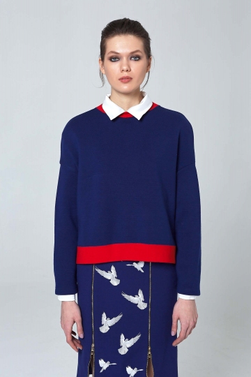 Blue Knitted Wool Jumper With Asymmetrical Sides