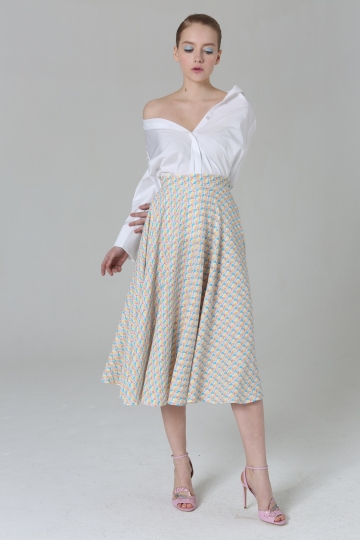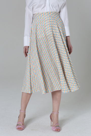 Pink- blue Print Skirt