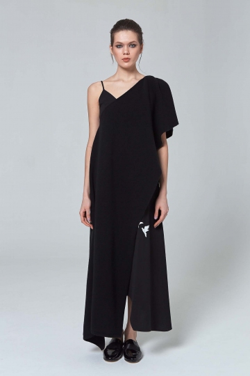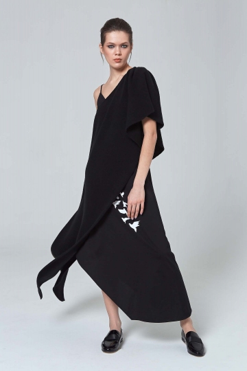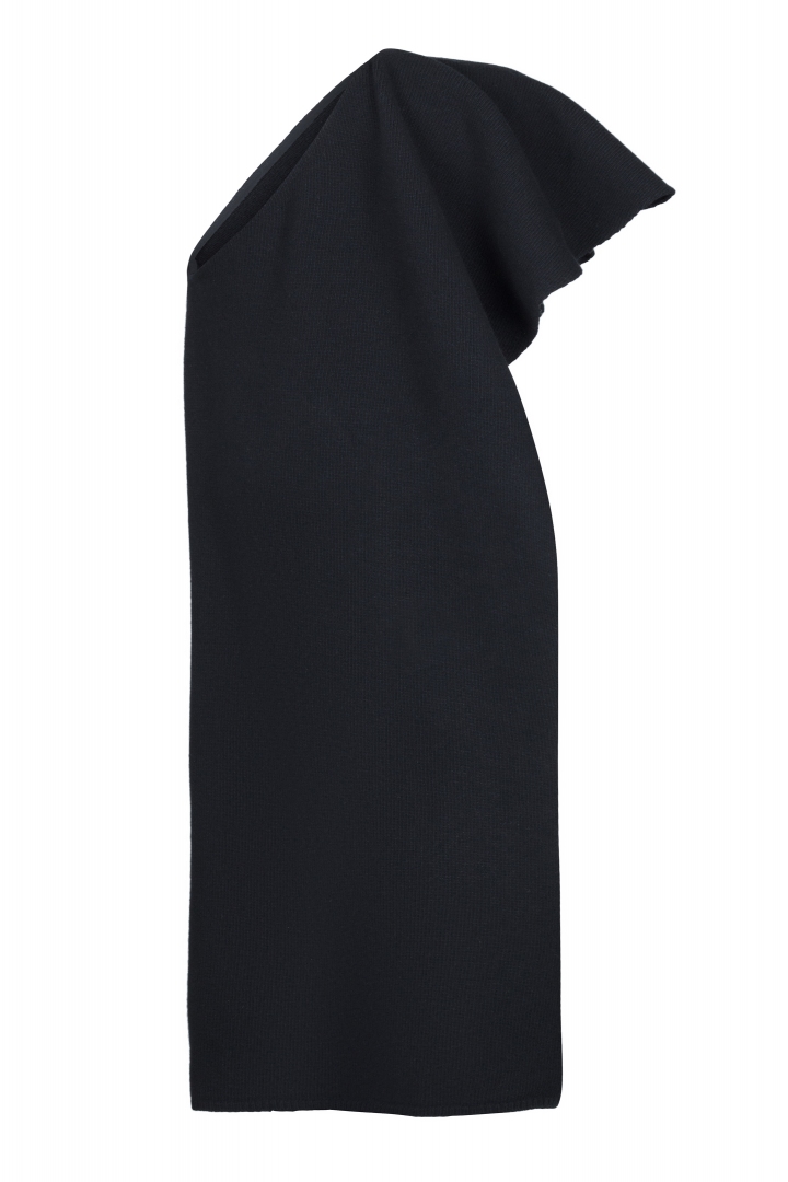 Асимметричная трикотажная туника изготовлена из легкой ткани, в состав которой входит кашемир и шелк. Туника свободно ниспадает по телу, тем самым создавая воздушный легкий силуэт. Два длинных разреза по бокам добавляют интриги. Идеально сочетается с черным асимметричным платьем из нашей коллекции.