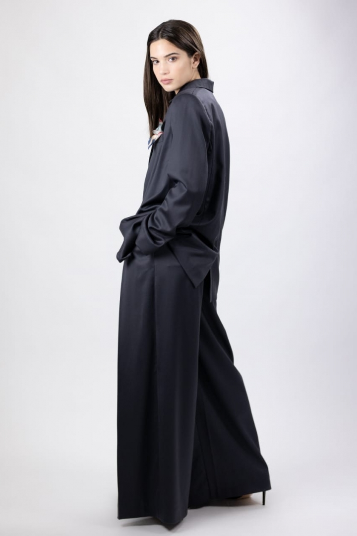 Пиджак в мужском стиле цвета черный графит удачно дополнит стильный образ. Оверсайз крой и 100% шерсть в составе расскажут о вашем безупречном вкусе и изысканности. Брючный костюм является визитной карточкой мужского стиля.